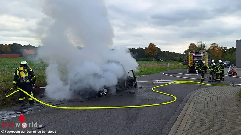 SONSBECK (DEUTSCHLAND): In einem Sonsbecker Gewerbegebiet brannte am 12. Oktober 2025 ein Fahrzeug in voller Ausdehnung. Personen wurden nicht verletzt.