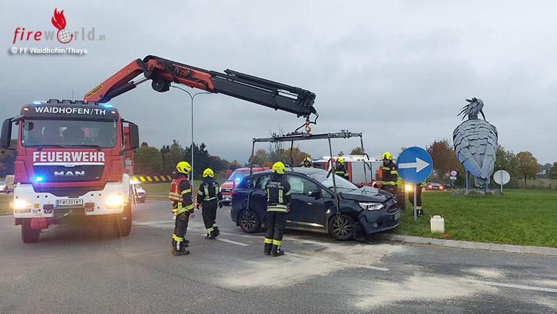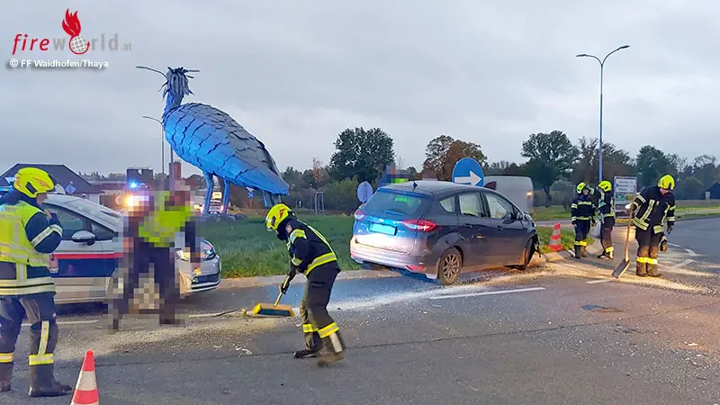 WAIDHOFEN AN DER THAYA (NÖ): Um 06:48 Uhr des 13. Oktober 2025 wurde die Feuerwehr Waidhofen/Thaya zu einem Verkehrsunfall beim Kreisverkehr B5/B36 alarmiert. Zwei Fahrzeuge waren in einen Unfall verwickelt und mussten im starken Morgenverkehr von der Fahrbahn geborgen werden.