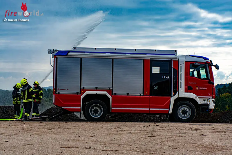 ALBERNDORF IN DER RIEDMARK (OÖ): Den Höhepunkt zur Absolvierung der Goldenen Bezirksplakette bildet immer eine Großübung basierend einer Schadenslage ähnlich eines Alarmstufe 2 Einsatzes. Übungsannahme war am 11. Oktober 2025 ein Brand bei der Firma Huemer Kompost im Bereich des Bürogebäudes.