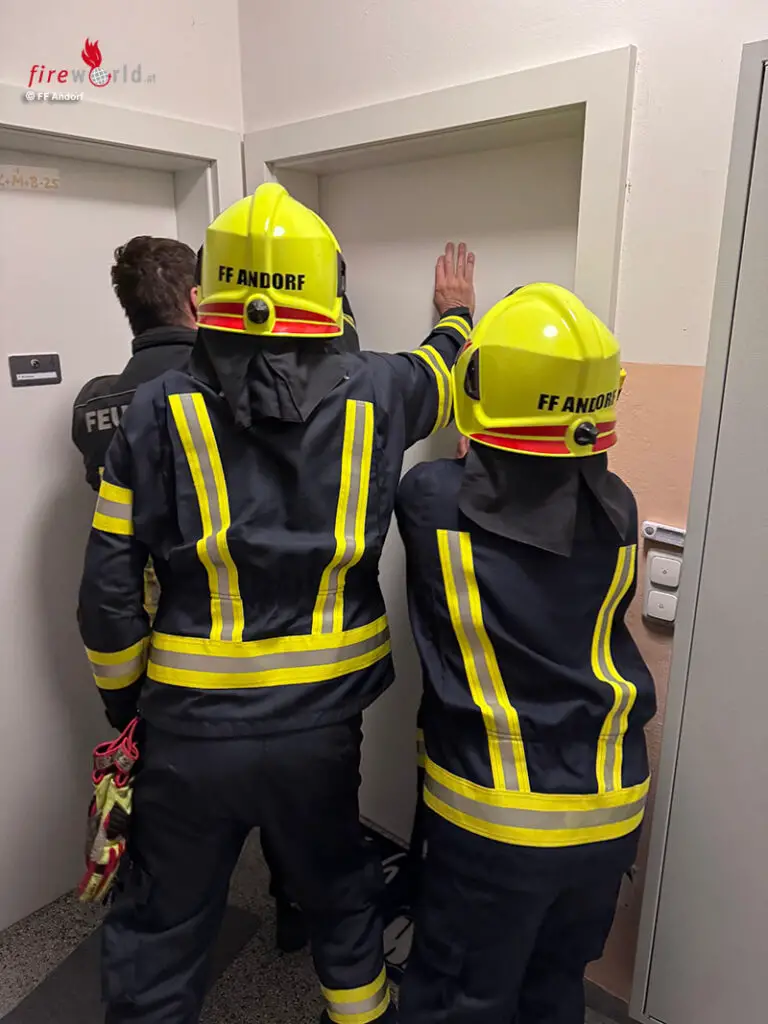 Der Bewohner der darüberliegenden Wohnung reagierte nicht auf die Türklingel – nach Rücksprache mit einer Verwandten war dessen Anwesenheit jedoch anzunehmen, sodass zum Zeitpunkt des Eintreffens der Einsatzkräfte der Feuerwehr davon ausgegangen werden musste, dass es sich um einen medizinischen Notfall handelt. Im Beisein von Einsatzkräften der Polizei wurde daher die mehrfach gesicherte Wohnungstür von der Feuerwehr Andorf mit Spezialwerkzeug geöffnet.