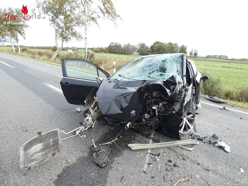 Die Frau schert aus, um die beiden Fahrzeuge zu überholen. Dies erkennt der 31-jährige Ford-Fahrer aus Schiffdorf nicht und setzt ebenfalls zum Überholen an. Dabei touchiert er den bereits neben ihm befindlichen Peugeot. Durch den Zusammenstoß verliert die 22jährige die Kontrolle über den Peugeot, gerät ins Schleudern, kommt anschließend von der Fahrbahn ab und kollidiert mit einem Baum.