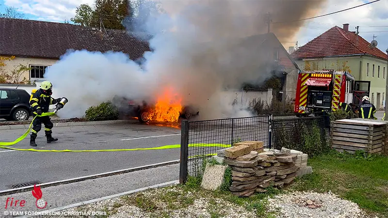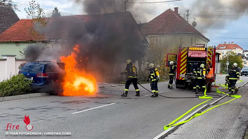 OBERNBERG AM INN (OÖ): Am Samstagnachmittag, 18. Oktober 2025, geriet in Obernberg am Inn ein Pkw in Vollbrand, konnte jedoch rasch von der Feuerwehr gelöscht werden.