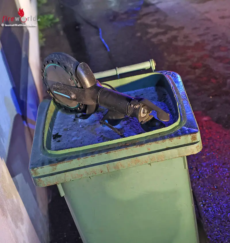 Einige Räume waren teils stark verraucht. Der E-Scooter wurde dann in eine geflutete Mülltonne gegeben, um ein neuerliches Entzünden zu verhindern. Die Polizei hat die Ermittlungen aufgenommen.