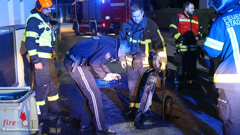 Die Feuerwehr wurde mit dem Einsatzstichwort „Brand Pkw mit Elektroantrieb im Freien“ zu einem Brandeinsatz nach Stadl-Paura alarmiert. Dort brannte statt eines Pkw zwar ein E-Scooter, die Lage war anfangs dennoch kurz angespannt. Der E-Scooter konnte zum Glück noch ins Freie gebracht werden, sodass die Feuerwehr nach dem Eintreffen sofort mit weiteren Löschmaßnahmen startete und zugleich die Belüftung des Hauses in die Wege leitete.