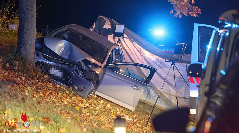 Oö: Unfall mit Todesfolge bei Meggenhofen → Auto frontal gegen Baum gekracht