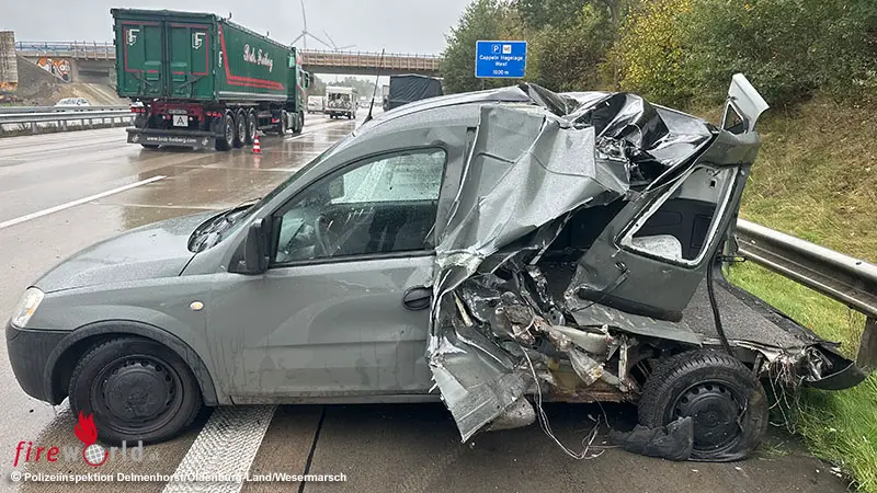 Eine 38-jährige Frau aus Oldenburg war gegen 13:05 Uhr mit einem Opel auf der Autobahn 1 in Richtung Osnabrück unterwegs. Zwischen den Anschlussstellen Cloppenburg und Vechta wurde sie auf einen Defekt an ihrem Pkw aufmerksam und brachte diesen auf dem Standstreifen zum Stehen. Trotz des schlechten Wetters verließ sie den Opel und wartete außerhalb des Fahrzeugs auf Hilfe. Ein 59-jähriger Mann aus dem Ammerland näherte sich mit einem VW mit Anhänger der Gefahrenstelle. Dabei geriet er ins Schlingern und mit dem Anhänger auf den Standstreifen, wo es zu einer Kollision mit dem glücklicherweise unbesetzten Opel der Frau kam.
