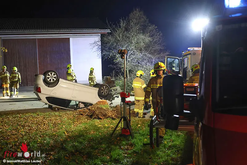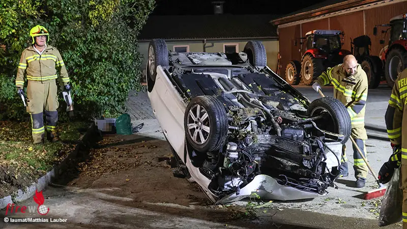 BAD HALL (OÖ): In Bad Hall (Bezirk Steyr-Land) hat sich am späten Dienstagabend, 21. Oktober 2025, ein Auto nach dem Anprall an einen Baum überschlagen.