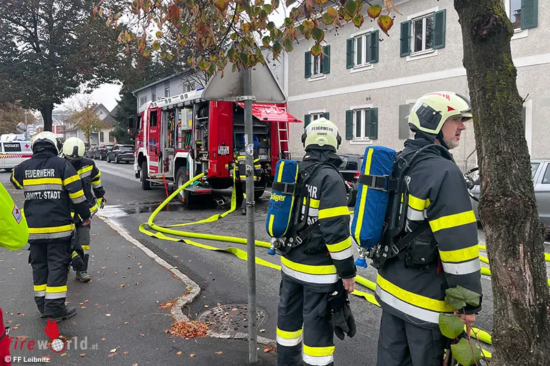 Am Vormittag des 22. Oktobers wurde die Feuerwehr Leibnitz zu einem Zimmerbrand in die Dechant-Thaller-Straße alarmiert. Aus bislang unbekannter Ursache kam es im Vorraum einer Wohnung zu einem Brand. Bereits auf der Anfahrt war deutlicher Brandgeruch wahrnehmbar, zudem drang Rauch aus den Fenstern des Erdgeschosses.