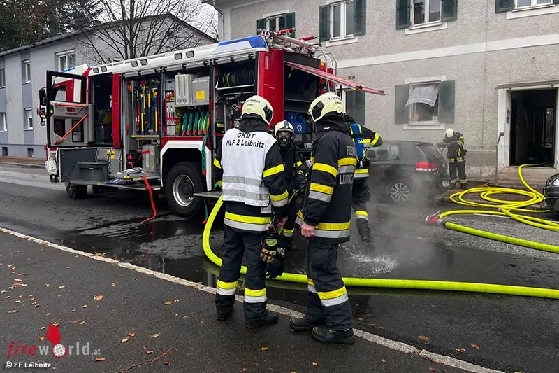 Am Vormittag des 22. Oktobers wurde die Feuerwehr Leibnitz zu einem Zimmerbrand in die Dechant-Thaller-Straße alarmiert. Aus bislang unbekannter Ursache kam es im Vorraum einer Wohnung zu einem Brand. Bereits auf der Anfahrt war deutlicher Brandgeruch wahrnehmbar, zudem drang Rauch aus den Fenstern des Erdgeschosses.