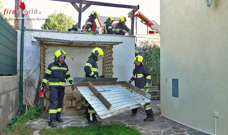 Um 09.26 Uhr wurde die Freiwillige Feuerwehr St.Veit a.d.Triesting von der Feuerwehr Bereichsalarmzentrale BADEN zu einem Sturmeinsatz alarmiert. Ein Carport hielt den starken Windböen nicht stand. Mehrere Teile wurden in den Garten und auf die Straße geweht. Mühsam galt es die Blechteile und die beschädigte Holzkonstruktion zu entfernen.