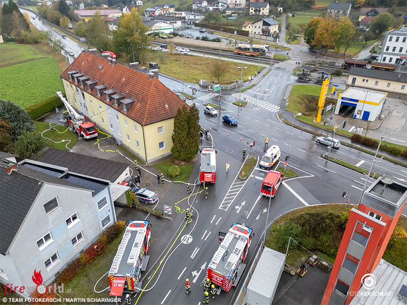 OTTENSHEIM (OÖ): Am Samstagvormittag, 25. Oktober 2025, wurden die Feuerwehren Ottensheim, Höflein und Walding zu einem Zimmerbrand in einem mehrstöckigen Wohnhaus alarmiert.