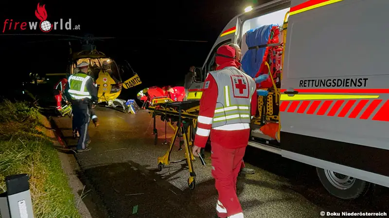 FEICHSEN (NÖ): Am Samstagabend, den 25. Oktober 2025, kam es auf der Straße bei Feichsen zu einem folgenschweren Verkehrsunfall. Aus bislang ungeklärter Ursache stießen zwei Pkw frontal zusammen. Von der Rettungsleitstelle Notruf Niederösterreich wurden umgehend mehrere Einsatzkräfte alarmiert.