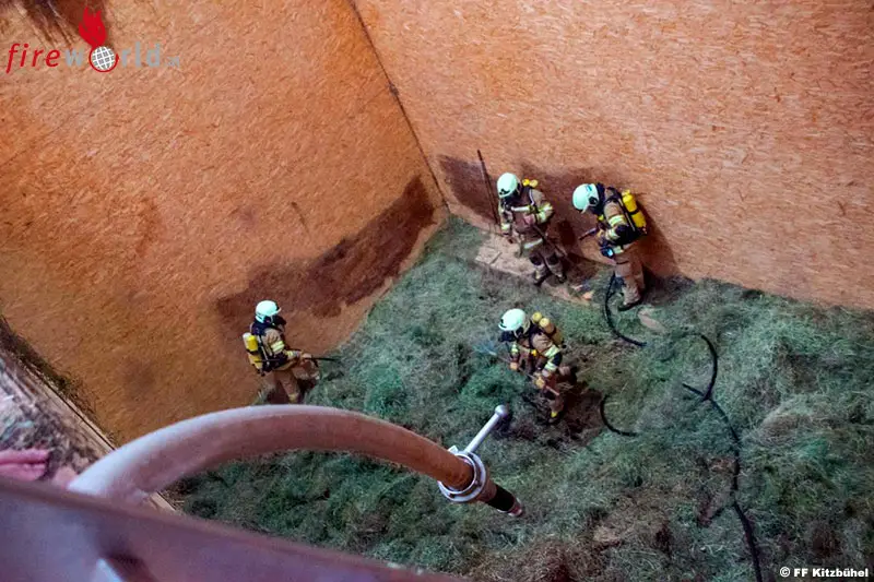 KITZBÜHEL (T): Am Samstagnachmittag, den 25. Oktober 2025, wurde die Freiwillige Feuerwehr Kitzbühel von der Feuerwehr Jochberg zur Unterstützung mit der Drehleiter zu einem Bauernhofbrand nach Jochberg alarmiert. In einer Box gelagertes Heu war in Brand geraten. Die Drehleiter Kitzbühel wurde zur Verhinderung einer möglichen Brandausbreitung bereitgestellt.
