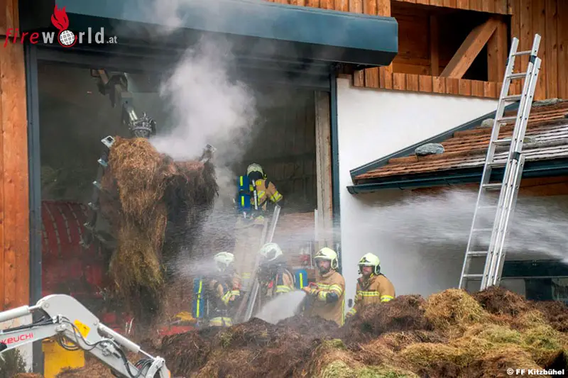 Der Atemschutztrupp des Tanklöschfahrzeuges war zunächst als Sicherungstrupp im Einsatz und wurde anschließend zur Unterstützung der Atemschutztrupps der Feuerwehren Jochberg und Aurach beim Ausräumen des Heustockes angefordert. Für die Räumarbeiten kamen zwei Bagger sowie der Ladekran des landwirtschaftlichen Betriebs zum Einsatz. Ein weiterer Atemschutztrupp der Feuerwehr Kitzbühel wurde mit dem Mehrzweckfahrzeug nachgeführt und gemeinsam mit den Geräten der Drehleiter als Sicherungstrupp eingesetzt.