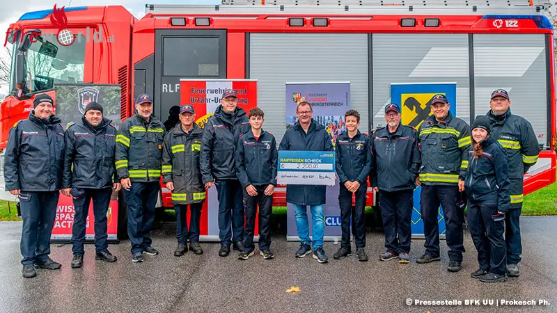 Bereits zum 46. Mal fand der Wandertag statt. Die Raiffeisenbanken des Bezirkes unterstützen jedes Jahr großzügig die Veranstaltung. Christian Pinsker Mitglied des Vorstandes der Raiffeisenbanken Region Gallneukirchen überreichte den Spendenscheck in der Höhe von €2.200,- stellvertretend an den Bezirks-Feuerwehrkommandanten Johannes Enzenhofer.