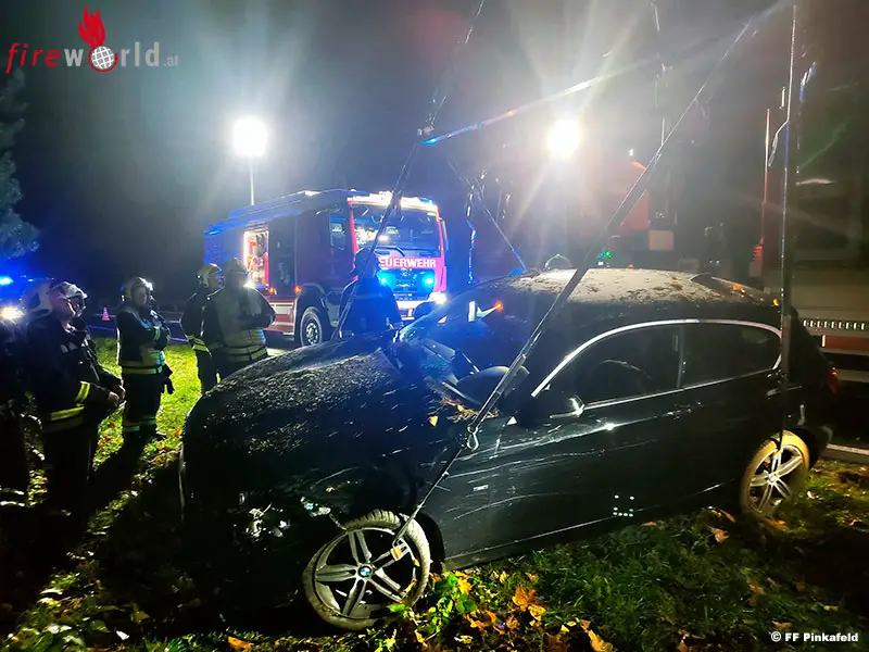 PINKAFELD (BGLD): Am Abend des 27. Oktober 2025 wurde die Freiwillige euerwehr Pinkafeld zu einer Fahrzeugbergung nach einem Verkehrsunfall am Gerichtsberg alarmiert. Die FF Pinkafeld rückte mit einem ELF (Einsatzleitfahrzeug), einem SRF (schweres Rüstfahrzeug), einem RLF (Rüstlöschfahrzeug), einem WLF (Wechselladerfahrzeug) und achtzehn Mann zum Einsatz aus.