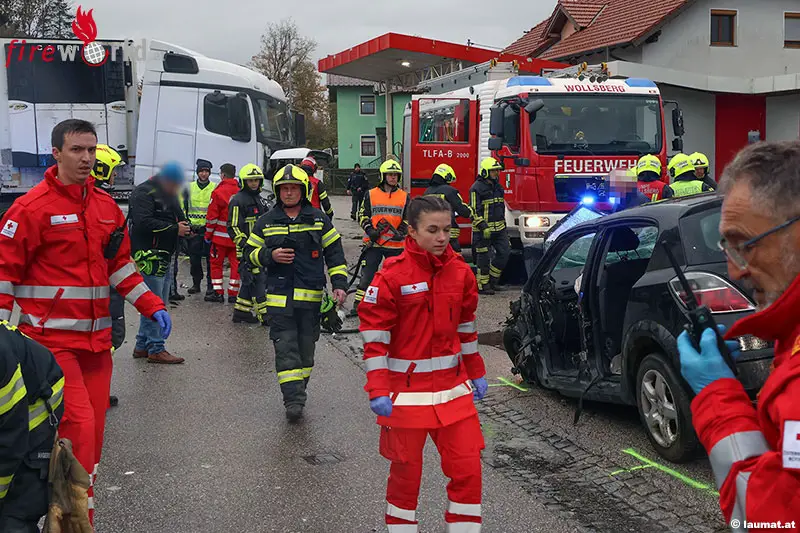 STEINERKIRCHEN AN DER TRAUN (OÖ): Ein schwerer Verkehrsunfall zwischen einem Lkw und einem Pkw hat sich Montagnachmittag, den 27. oktober 2025, auf der L537 Sattledter Straße in teinerkirchen an der Traun (Bezirk Wels-Land) ereignet.
