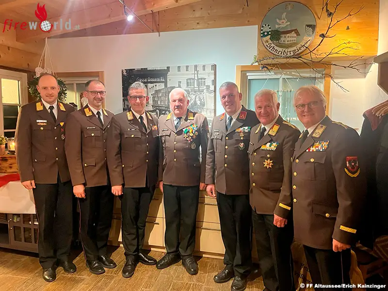 Nach der Wahl ging es zum Schneiderwirt, wo der scheidende ABI Werner Fischer zu einer Abschiedsfeier geladen hat. Hier waren viele hochrangige Feuerwehroffiziere, wie der Präsident des österr. Bundesfeuerwehrverbandes Robert Mayer, der Ehrenpräsident Albert Kern, die ehemaligen Bezirksfeuerwehrkommandanten des Bezirkes Liezen, ELBD-Stv. Gerhard Pötsch und EOBR Heinz Hartl, der Bezirksfeuerwehrkommandant von Gmunden, OBR Thomas Dreiblmeier, der Abschnittskommandant aus Bad Ischl, BR Andreas Limbacher, von der Polizei die stellvertretende Polizeikommandantin Hauptmann Tanja Zefferer, vom Roten Kreuz Ortstellenleiter Philipp Winkler, Michael Allmer und Martin Mayer, die Einsatzleiter der Bergrettung Ausseerland Markus Raich, sowie Georg Holzer, und seitens der Salinenmusikkapelle Robert Leu. Viele würdigten die umfassende Tätigkeit von ABI Werner Fischer im Rahmen seiner Feuerwehrtätigkeit und wünschten dem neuen ABI Christian Fischer viel Erfolg für die Zukunft.