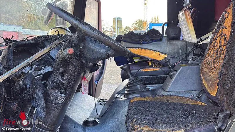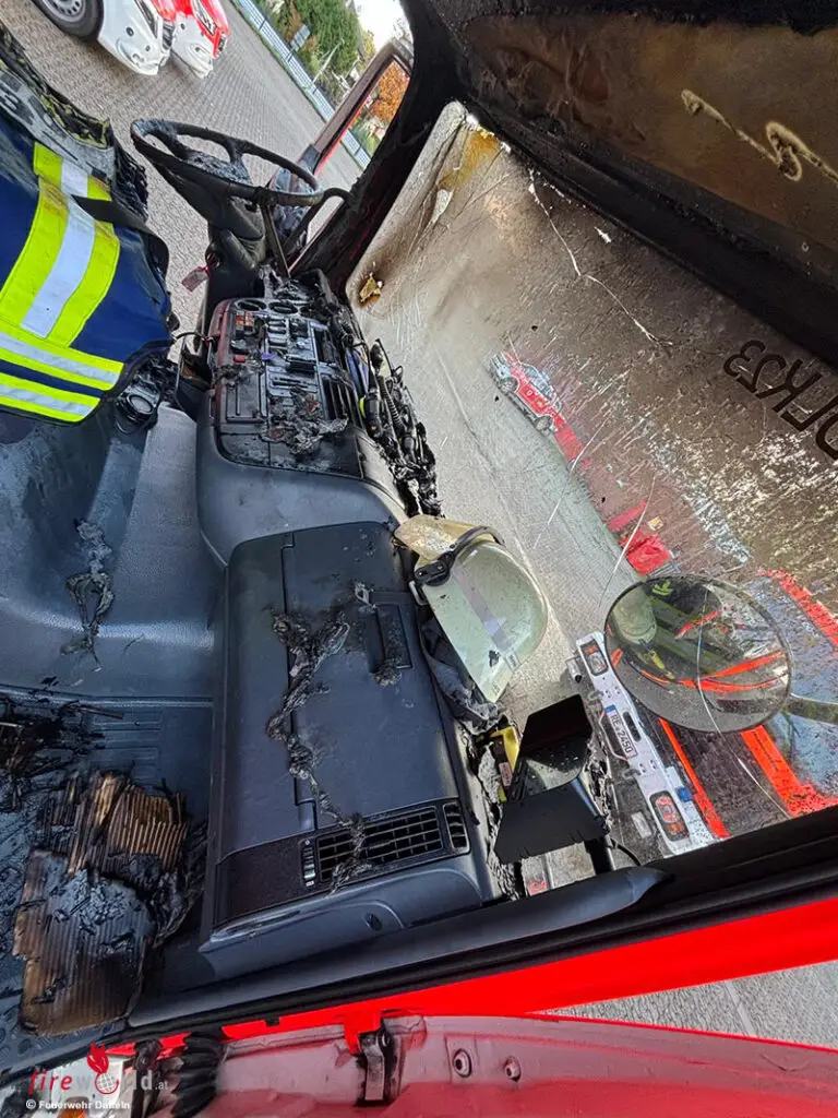 Die umgehend eingeleiteten Löschmaßnahmen zeigten sofort Wirkung, so dass das Feuer umgehend gelöscht werden konnte. „Zum derzeitigen Zeitpunkt müssen wir jedoch feststellen, dass die Fahrerkabine durch den Brand massiv beschädigt wurde und das Fahrzeug auch auf längere Sicht nicht mehr einsatzbereit sein wird. Die Nachbarstädte werden uns für die nächsten Tage im Rahmen der nachbarschaftlichen Hilfe bei entsprechenden Einsätzen unterstützen“, fasst Sebastian Kiffer (stellv. Leiter der Feuerwehr die Situation zusammen. Bereits kurze Zeit nach dem Brand waren Gutachter, Vertreter der Versicherung und Brandschadensanierer vor Ort und haben bereits mit den notwendigen Arbeiten begonnen, um die Funktionsfähigkeit des Gebäudes wieder herzustellen.