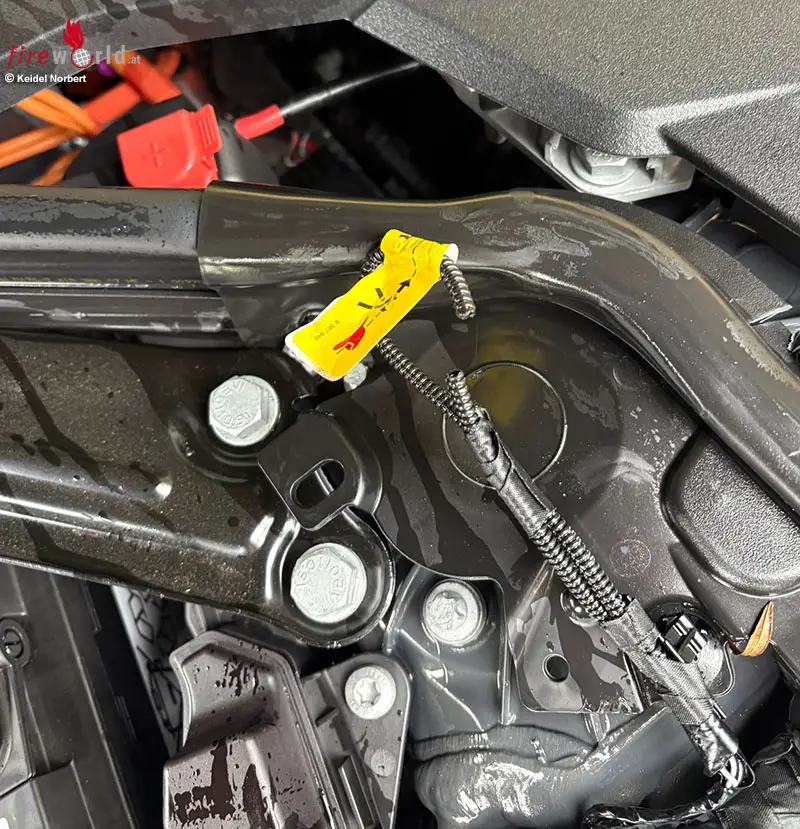 Es wurde ein Brandschutz aufgebaut und der Trennschalter mithilfe der Rettungskarte lokalisiert. Nach dem stromlosen Schalten des Fahrzeuges mittels Feuerwehr-Trennschalter erfolgte die Bergung durch den Kran des Schweren Rüstfahrzeuges Tamsweg.