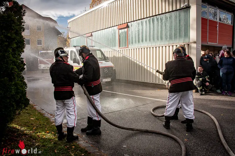 Gemeinsam mit Rettungssanitätern des Roten Kreuzes Kottingbrunn wurden zwei verletzte Arbeiterinnen nach einem Unfall auf dem Dach der Fahrzeughalle gerettet und versorgt. Die Bevölkerung bedankte sich bei ihren Feuerwehrfrauen und Feuerwehrmännern mit einem großen Applaus. Die Firma Brandschutz JOST stellte für den Tag der offenen Türe einen Fire – Trainer zur Verfügung. Geschäftsführer Dieter Jost konnte nach der großen Einsatzvorführung den interessierten Besucherinnen und Besuchern einen Fettbrand mit großer Fettexplosion vorführen. Natürlich wurde auch hier auf Prävention gesetzt und das richtige Löschen von Fettbränden gemeinsam besprochen und konnte auch geübt werden.