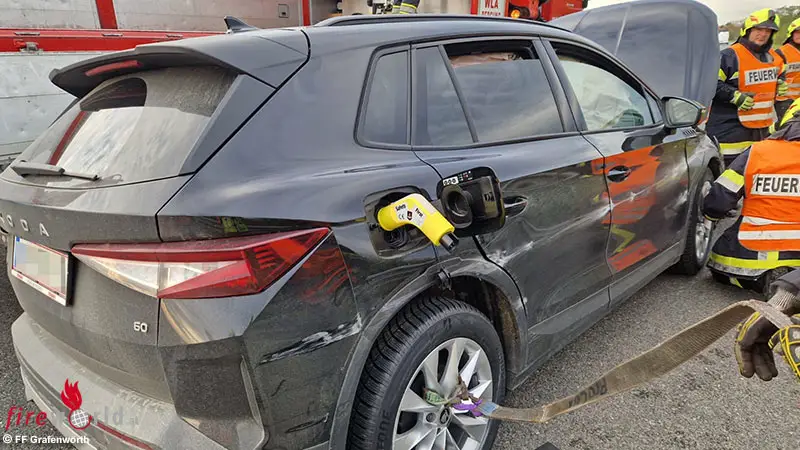 Der Lenker wurde dabei unbestimmten Grades verletzt, bei Eintreffen der Feuerwehr wurde dieser bereits vom Rettungsdienst versorgt. Die Grafenwörther Feuerwehrleute sicherten die Unfallstelle ab und bauten einen Brandschutz auf. Da das Unfallfahrzeug über einen Elektromotor verfügt, wurde auch der E-Plug eingesetzt um das Fahrzeug in einen sicheren Zustand zu bringen.
