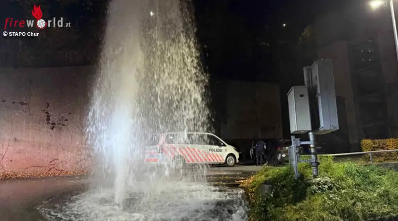 Schweiz: Auto reißt Hydranten raus → Wasserflut auf Fahrbahn in Chur