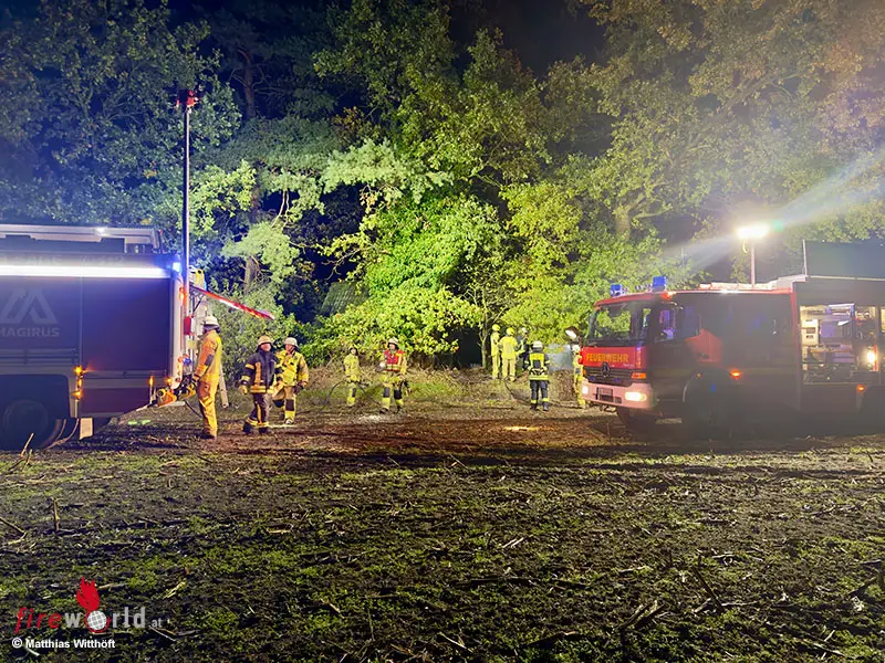 Da sich der Brand unter Bäumen und in unmittelbarer Nähe eines Holzschuppens befand, bestand die Gefahr, dass sich die Flammen weiter ausbreiten. Durch das schnelle Eingreifen der Einsatzkräfte konnte dies jedoch verhindert werden. Um ein Wiederaufflammen der Brandstelle sicher auszuschließen, setzten die Feuerwehrleute zum Abschluss ihrer Löscharbeiten sogenanntes Netzwasser ein. Dieses besitzt aufgrund eines Zusatzes eine verringerte Oberflächenspannung und kann so besser in glimmende Materialien eindringen, diese abkühlen und löschen.