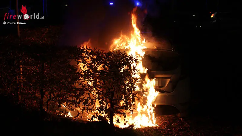 D: Pkw auf Biergarten-Parkplatz in Jülich in Brand geraten