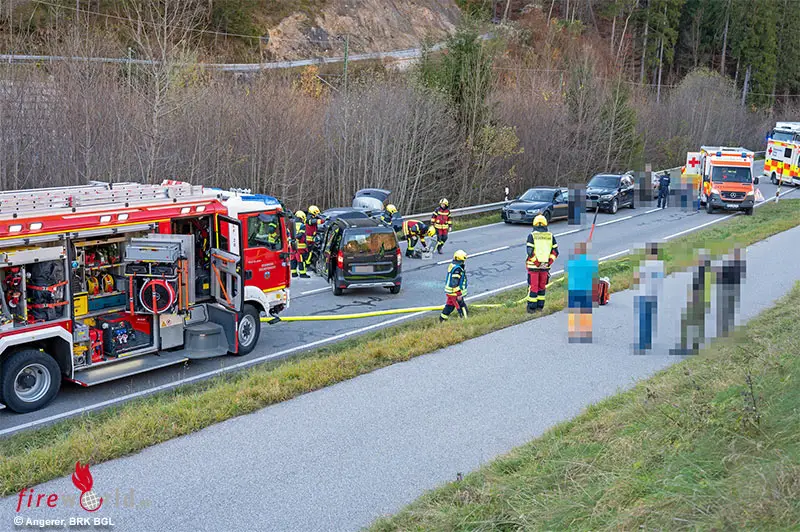 Das Rote Kreuz war mit zwei Rettungswagen aus Bad Reichenhall sowie der Berchtesgadener Notärztin im Einsatz, versorgte die beiden verletzten Autofahrer vor Ort notärztlich und transportierte sie anschließend unter notärztlicher Begleitung zur weiteren Untersuchung zur Kreisklinik Bad Reichenhall. Die Freiwillige Feuerwehr Bischofswiesen sicherte mit vier Fahrzeugen und rund 40 Einsatzkräften die Unfallstelle ab, stellte den Brandschutz sicher, übernahm die Verkehrslenkung und reinigte im Anschluss die Fahrbahn.