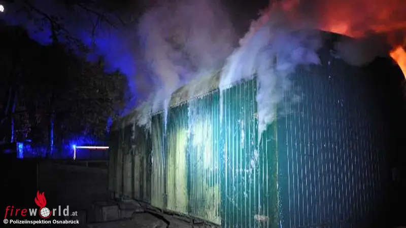 Beim Eintreffen der Einsatzkräfte standen zwei Bauwagen, die sich hinter einer Firma für Rücknahmeautomaten befinden, in Vollbrand. Die Berufsfeuerwehr Osnabrück löschte die Flammen rasch, konnte jedoch ein vollständiges Ausbrennen beider Bauwagen nicht verhindern. Personen wurden nicht verletzt. Nach derzeitigen Erkenntnissen ist von einer Brandstiftung auszugehen.
