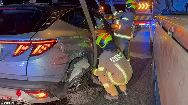 PÖCHLARN (NÖ): Mit dem Alarmstichwort „T2 – Verkehrsunfall unklare Lage, Fahrzeuge kreuz und quer“ wurde der technische Zug der Freiwilligen Feuerwehr Pöchlarn am Mittwochabend, dem 5. November 2025, zu einem Verkehrsunfall auf die A1 Westautobahn alarmiert.