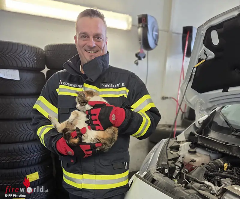 Oö: Rettung eines Kätzchens aus dem Kühlergrill eines Pkw