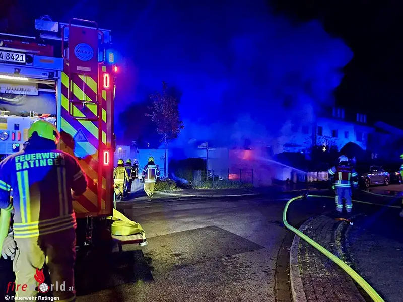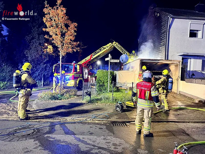 D: Garage neben Wohnhaus in Ratingen in Flammen