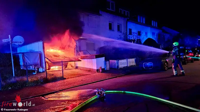 D: Garage neben Wohnhaus in Ratingen in Flammen
