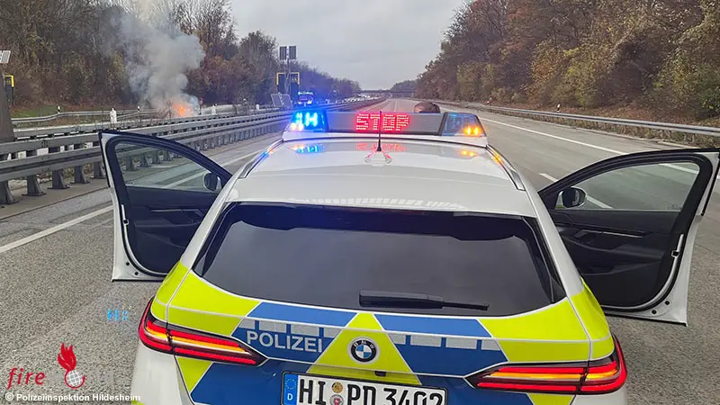 HILDESHEIM (DEUTSCHLAND): Am Samstag, 8. November 2025, teilte gegen 13:55 Uhr eine Vielzahl an Verkehrsteilnehmern einen Pkw-Brand auf der BAB 7 zwischen dem Parkplatz „An der Alpe“ und der Anschlussstelle Hildesheim-Drispenstedt in Fahrtrichtung Kassel per Notruf der Polizei und der Feuerwehr mit.