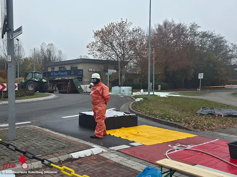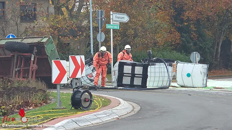 D: Traktoranhänger mit vier Containern Propionsäure umgestürzt → Gefahrguteinsatz in Zeven