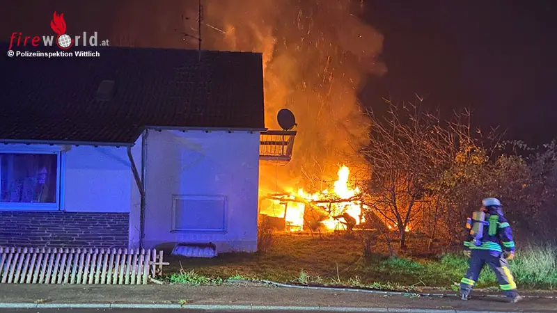 Als die Feuerwehr und die Polizei vor Ort eintrafen, konnte festgestellt werden, dass ein Holzschuppen, welcher sich hinter dem Anwesen befand, in Vollbrand stand. Durch die Kräfte der Feuerwehr konnte der Brand schnell unter Kontrolle gebracht und ein Übergreifen der Flammen auf das Wohnhaus vollends verhindert werden. Der Schuppen hingegen brannte vollständig ab. Es kam zu keinen Verletzten.
