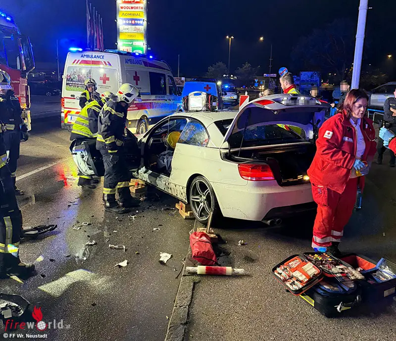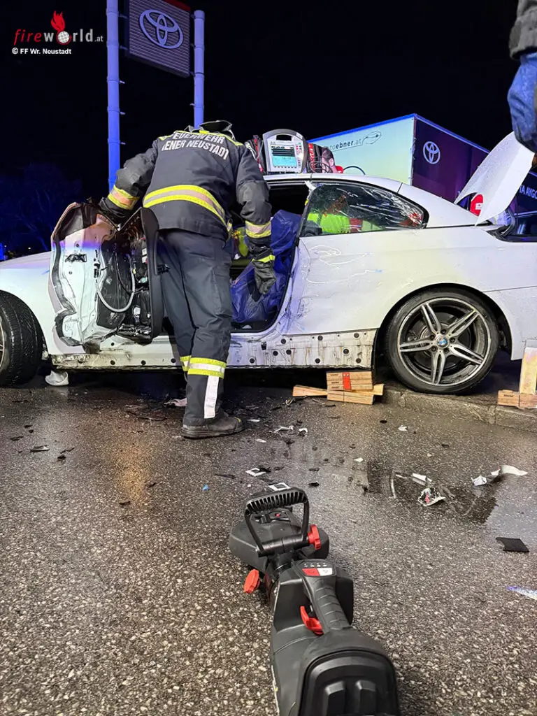 WIENER NEUSTADT (NÖ): Am Sonntagabend, 9. November 2025, ereignete sich auf der Wiener Neustädter Stadionstraße in Wiener Neustadt ein schwerer Verkehrsunfall. Einer der Lenker musste aus dem verformten Fahrzeug geschnitten werden. Drei Personen wurden unbestimmten Grades verletzt.