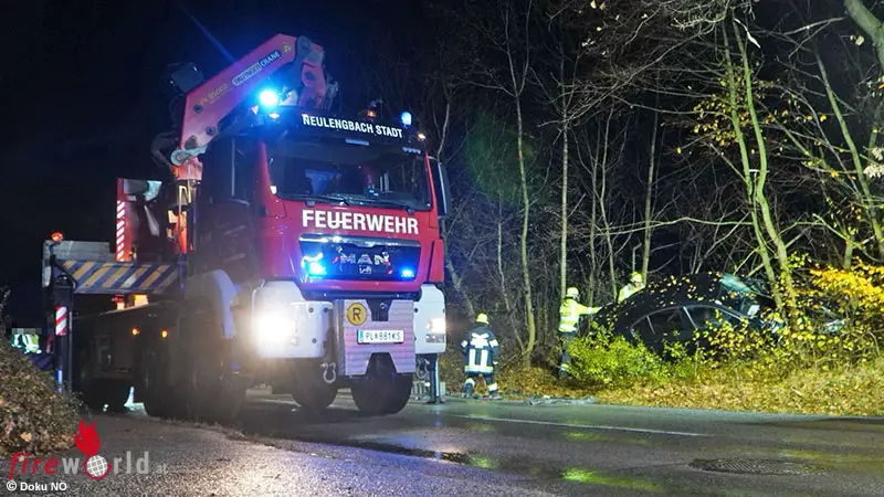 NEULENGBACH (NÖ): Am 9. November 2025 kurz nach 22:00 Uhr wurden die Freiw. Feuerwehr Neulengbach Stadt sowie das Rote Kreuz und die Polizei Neulengbach zu einem Verkehrsunfall in die St.Pöltner Straße in Neulengbach alarmiert.