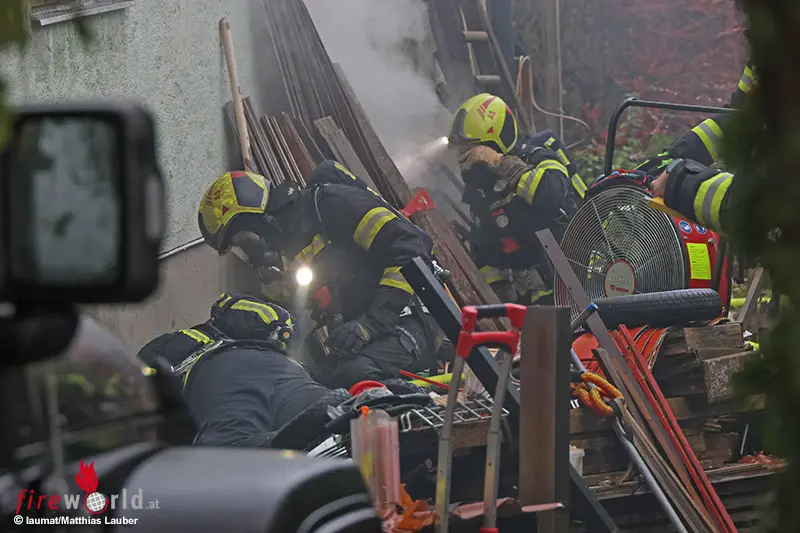 FISCHLHAM (OÖ): Einen äußerst schwierigen Einsatz hatten am Montag, 10. November 2025, Einsatzkräfte von vier Feuerwehren in einem kleineren Einfamilienhaus in Fischlham (Bezirk Wels-Land) zu bewältigen. Der Brandherd war kaum erreichbar.