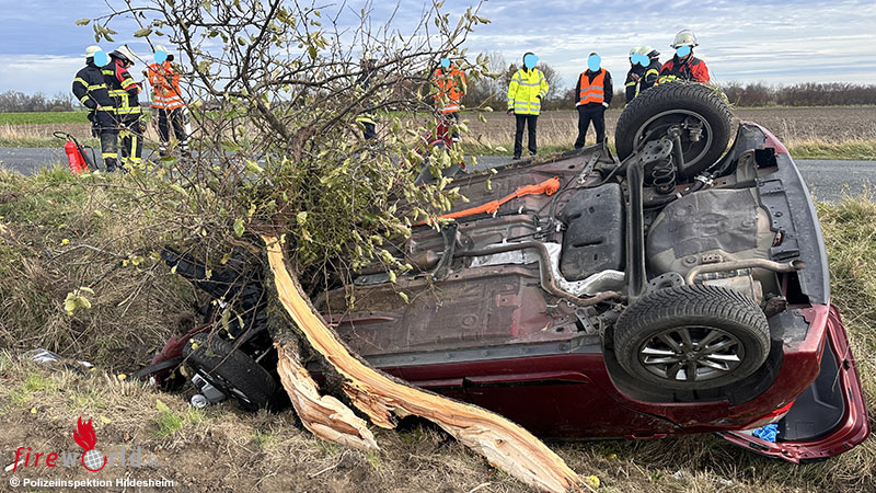 Mehrere Ersthelfer kamen der Frau bereit zuvor zur Hilfe. Die ansprechbare Fahrzeugführerin wurde im Anschluss mit einem Rettungswagen in ein Krankenhaus nach Hildesheim verbracht. An dem Pkw entstand Totalschaden. Auch der Baum wurde entwurzelt und zerstört. Der Gesamtschaden wird auf ca. 7.000 Euro geschätzt.