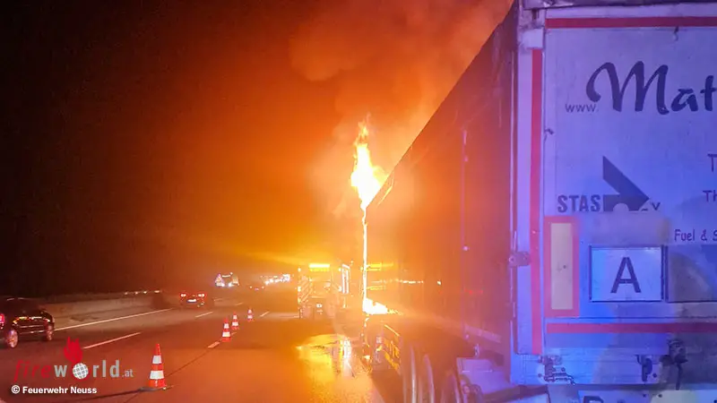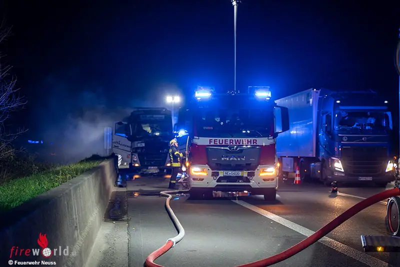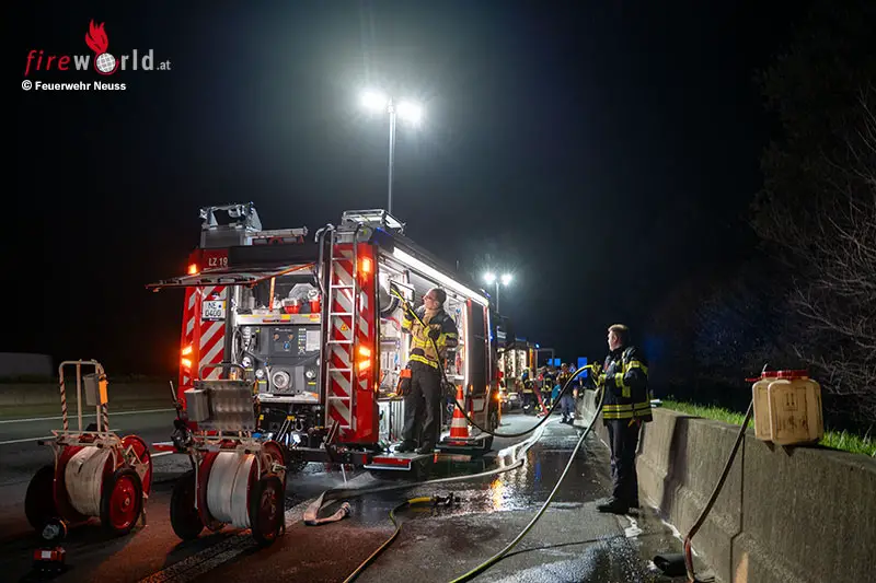 D: Zur richtigen Zeit am richtigen Ort: Feuerwehr Neuss löscht Lkw-Brand auf der A2 bei Hamm mit nagelneuen HLF 20
