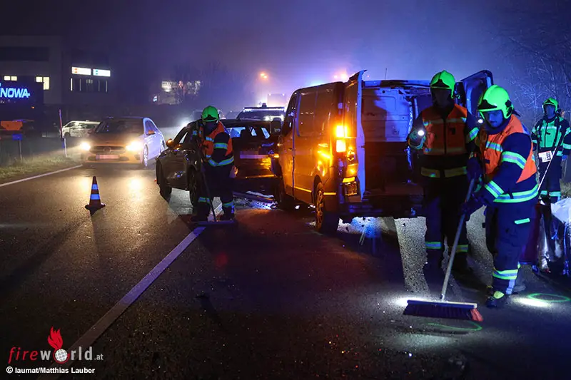Oö: Kleintransporter prallt auf B 1 in Marchtrenk auf Pkw