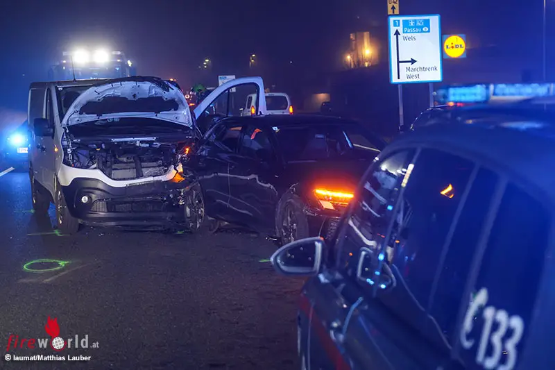MARCHTRENK (OÖ): Ein heftiger Auffahrunfall zwischen einem Kleintransporter und einem Pkw hat sich am späten Donnerstagnachmittag, 13. November 2025, auf der B1 Wiener Straße in Marchtrenk (Bezirk Wels-Land) ereignet.