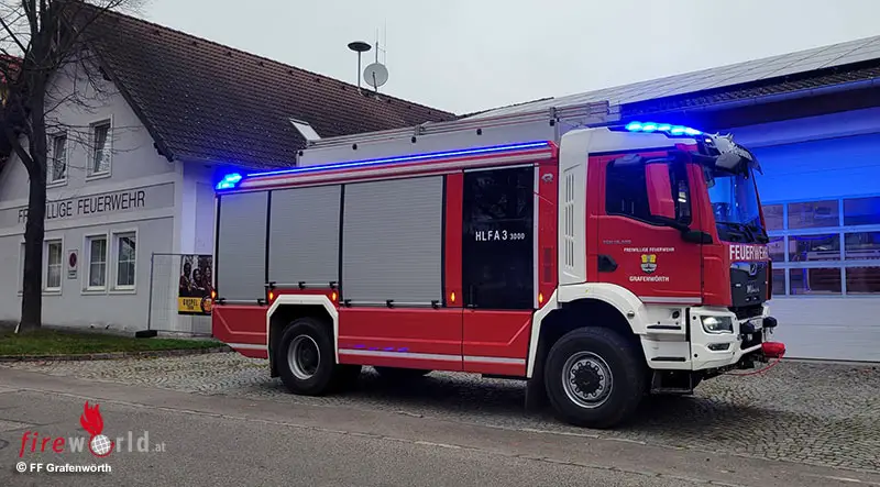 GRAFENWÖRTH (NÖ): Am 12. November 2025 konnte – nach etwa zwei Jahren Planungszeit – das neue Einsatzfahrzeug „HLFA3 3000“ (Hilfeleistungslöschfahrzeug Typ 3 mit Allradantrieb und 3000 l Wassertank) der Feuerwehr Grafenwörth beim Aufbauhersteller Fa. Rosenbauer in Leonding in Oberösterreich. übernommen werden. Nach einem würdigen Empfang zu Hause beginnt nun eine intensive Ausbildungszeit.