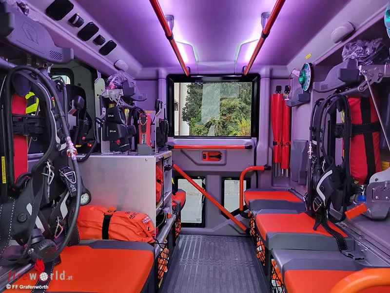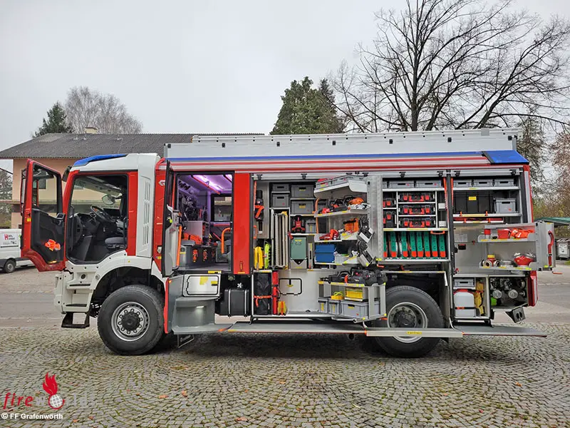 Vom Altbestand der Feuerwehr Grafenwörth wurden auch einige Geräte übernommen und ins neue Fahrzeug eingepasst. Darunter eine LKW-Rettungsplattform aus Aluminium, ein Greifzug mit 35kN Zugkraft, eine Zahnstangenwinde mit 100kN Kraft und ein 4-teiliges Hebekissenset zur technischen Menschenrettung. Komplett neu sind hingegen die zwei Stück Unterwasserpumpen „Nautilus 8/1“ von Fa. Rosenbauer sowie die Wärmebildkamera Flir K2 (zur Brandbekämpfung und Menschenrettung) und das Mehrgasmessgerät Dräger Xam 2800.