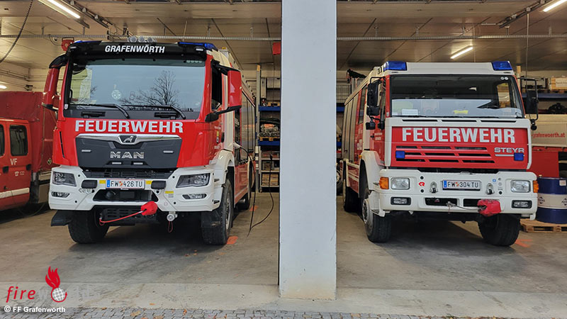 Während der Einschulungsphase steht das bewährte RLFA2000 noch parallel dazu im Einsatzdienst bei der Feuerwehr Grafenwörth, doch schon bald heißt es hier Abschied nehmen, nach 25 Jahren treuem Einsatzdienst mit rund 1.500 Einsätzen. Das neue HLFA3 3000 ist als Weiterentwicklung des RLF-Konzepts für die nächsten 25 Jahre gerüstet – möge es die Grafenwörther Feuerwehrleute stets sicher und unfallfrei ans Ziel bringen!