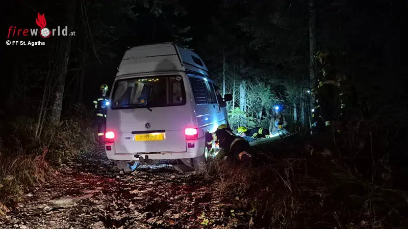 Oö: Nächtliche Kleinbusbergung auf Forstweg am Pötschenpass