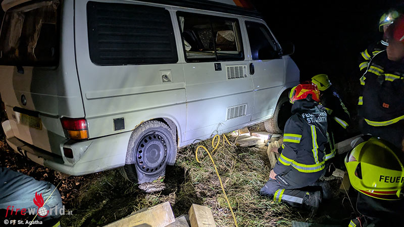 BAD GOISERN (OÖ): Gegen 3 Uhr morgens wurde die Freiwillige Feuerwehr St. Agatha am 15. November 2025 mit dem Stichwort „Bergung Kleinbus“ auf den Pötschenpass alarmiert.